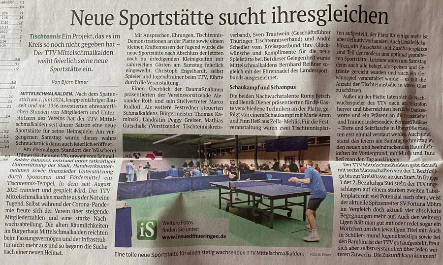 eigenständigen TTV Mittelschmalkalden e.V. aus der Taufe.